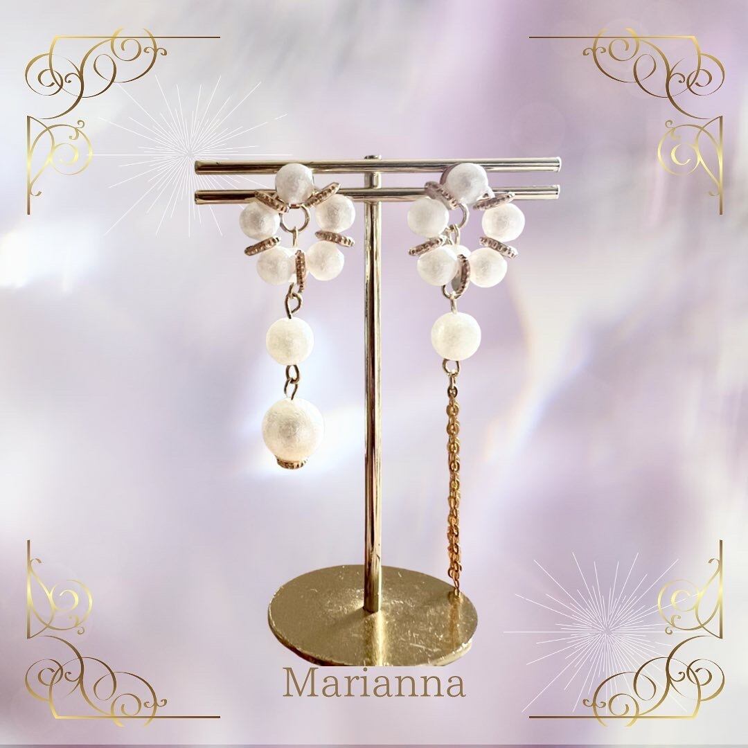 キャッチ部分に飾りを付けているので、耳に負担がかかりにくく、存在感のあるピアスですが、軽く付けていても耳が痛くなりません。